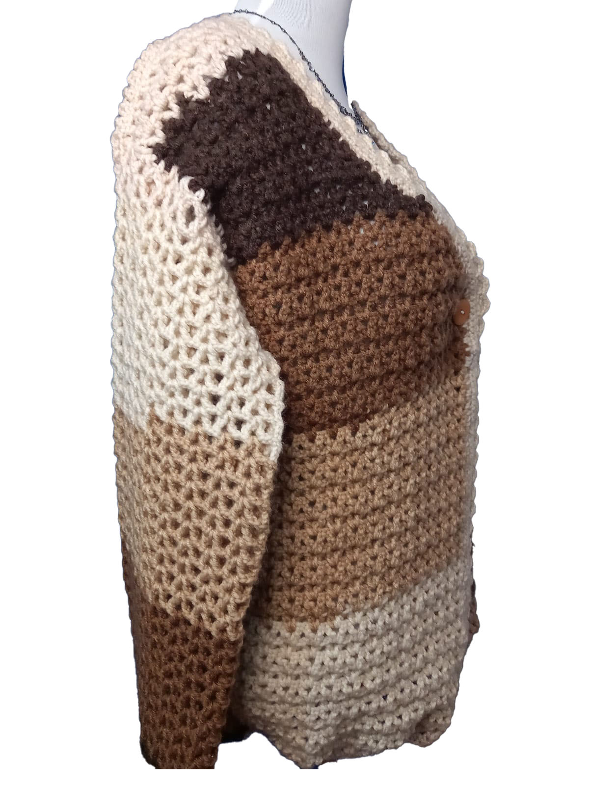 Cod: 102Chaleco tejido de lana artesanal tricolor.\r\n\r\nTalla: L\r\n\r\nTipo Tejido: Crochet\r\n\r\nTiempo tejido: 3 días Aprox.